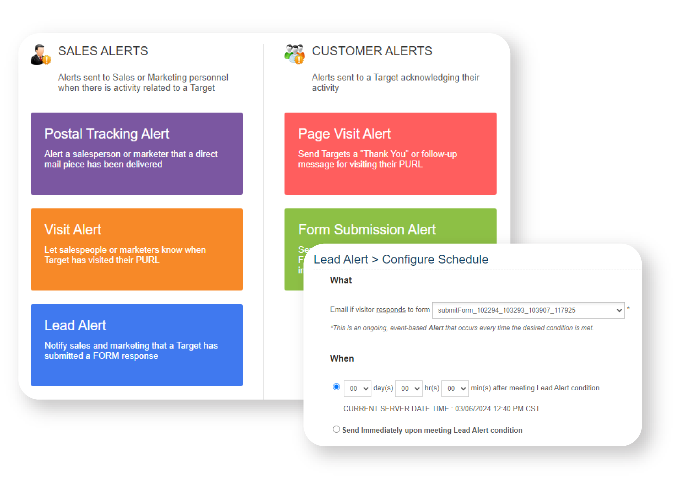 sales or marketing staff in real time, via SMS or email, every time a recipient takes action on a PURL