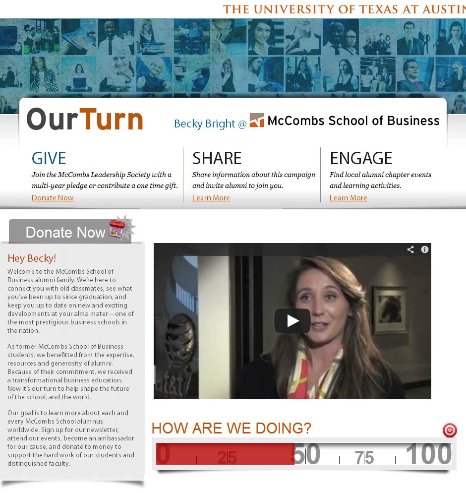Our platform has helped education institutions improve their cross-channel marketing to help drive significant increases in student applications, enrollment, and donations. This landing page creates a competition between graduating classes to encourage more substantial contributions. Click here to learn more