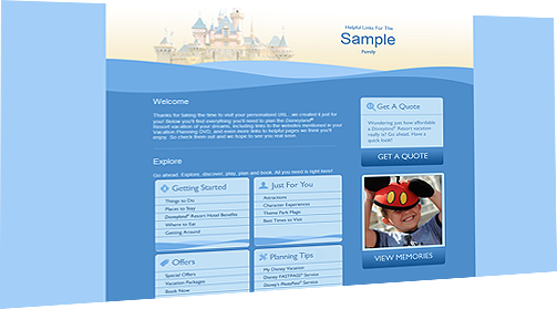 Major hospitality chains utilize personalized marketing to present unique offers that drive recurring revenue. In this landing page, specific offers to families are driven by data collected from past resort visits. Click here to learn more