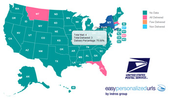 - Mail Piece Summary Map — interactive map of US with state-by-state breakdown of delivery rates